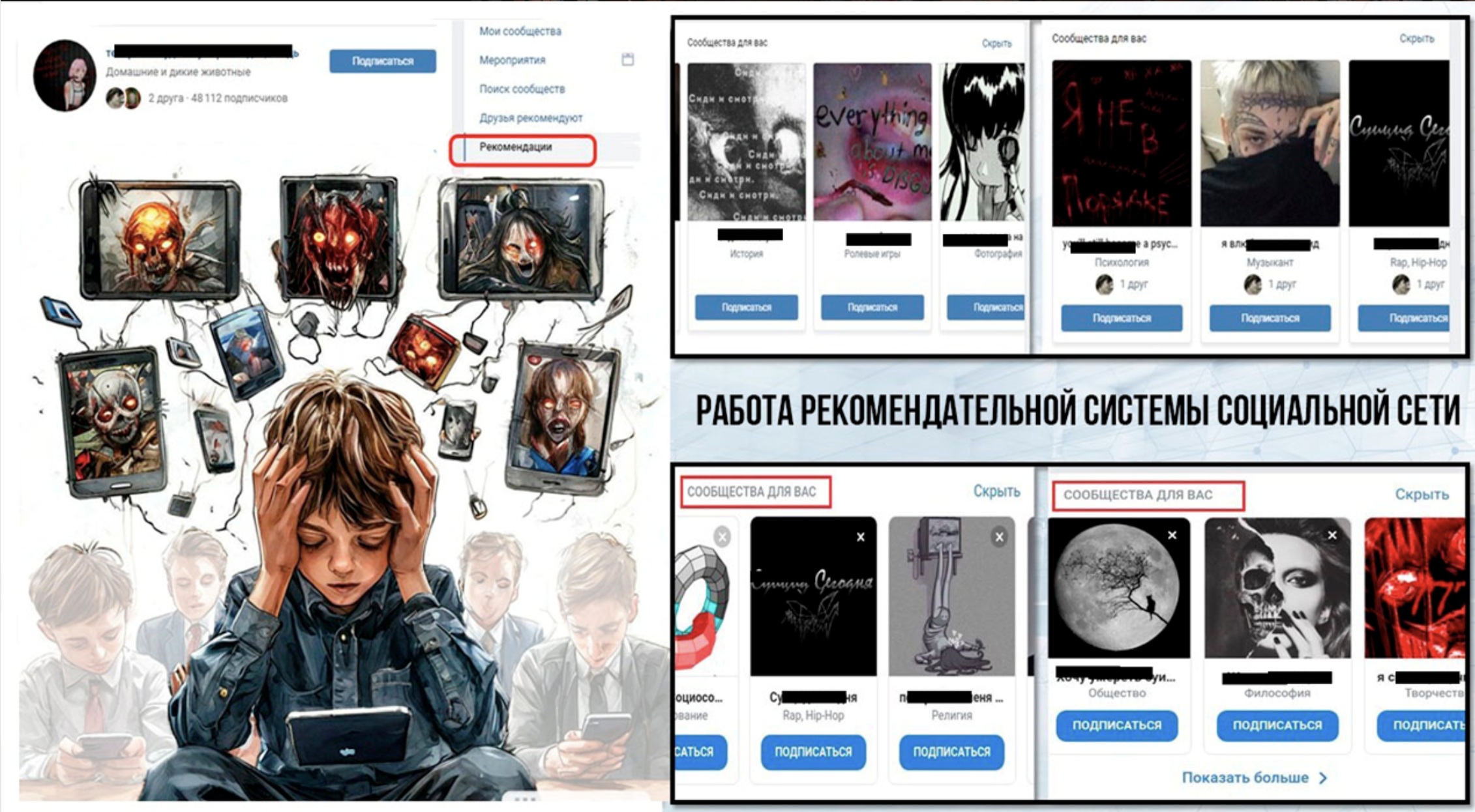 Говоря о социальных сетях, нельзя не сказать пару слов о рекомендательных механизмах, которые давно стали главными воронками вовлечения детей в деструктив.