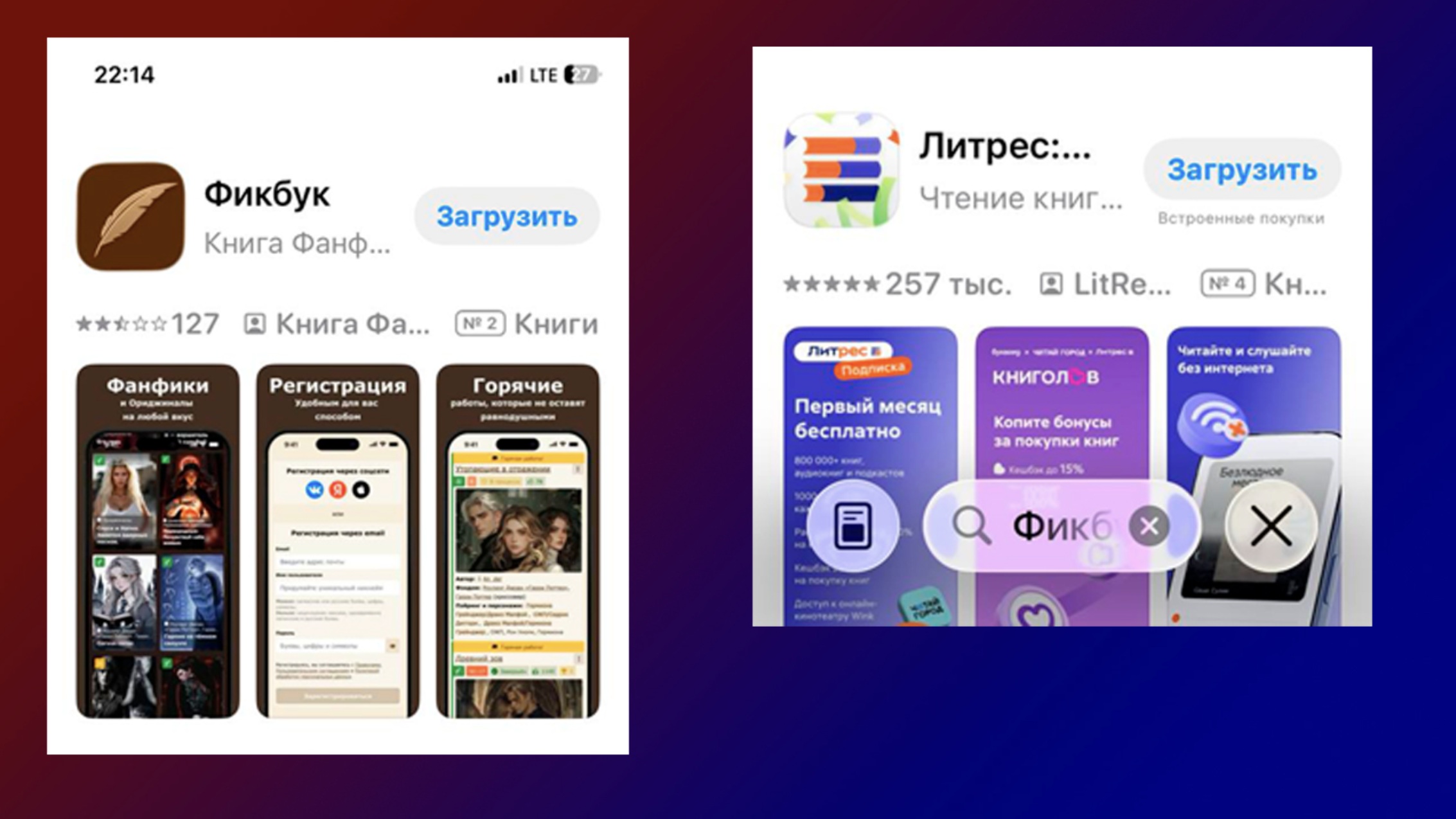 Наконец, приложения и мессенджеры. Вообще с этим в России очень большая проблема, учитывая тотальный охват большинства населения, включая детей, смартфонами. Например, в России до сих пор функционирует скандальная сеть Фикбук, которая официально была заблокирована Роскомнадзором в 2024 году за пропаганду половых извращений - но фактически она доступна пользователям, в т.ч. детям, через одноименное приложение, которое скачивается в гугл маркете.