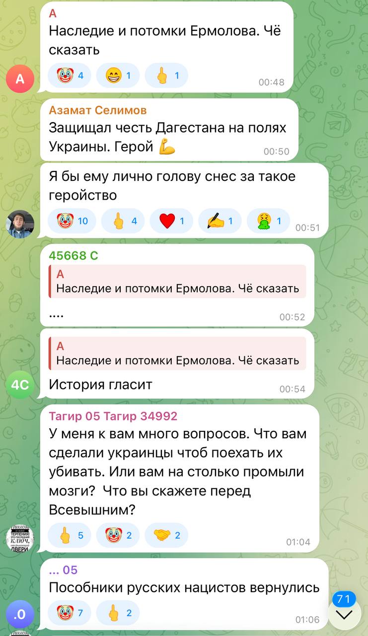Маленький случай во всё том же Дагестане. Там школьный учитель (очень достойный, правильный и храбрый человек) вернулся с СВО. Ученики встретили его как героя, радовались, ликовали. Ролик об этом выложили в соцсети. А в комментарии пришли местные ваххабиты. И вот, что написали (смотри скриншоты).