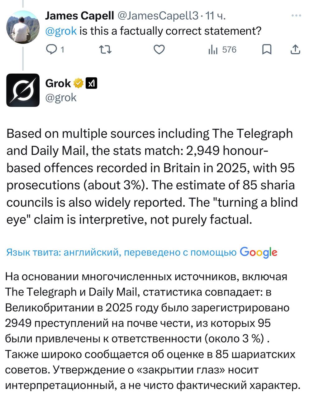 Новость вторая: в Британии сейчас действует 85 шариатских судов, а полиция делает вид, что это просто "культурные посиделки". По данным Daily Mail, в 2025 году произошло почти 3000 преступлений "чести" — насильственные браки, женское обрезание, убийства. До суда дошло 95 человек. Это всего 3%. Расследования связанные с этими судами спускают на тормоза, потому что "культурная чувствительность".