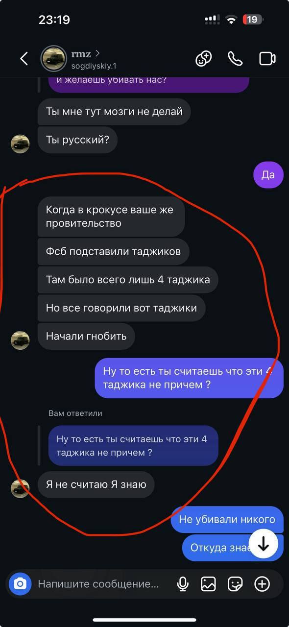 Помимо местных любителей борьбы с "русским фошызмом", вроде г-на Серенко, ожидаемо повылезали и таковые из числа "дорогих гостей". И откровенные "ценные специалисты", как таджикский таксист, разжигающий ненависть к русским. И таджикский курсант военной академии РФ, оправдывающий террористов из Крокуса и разжигающий ненависть к русским.