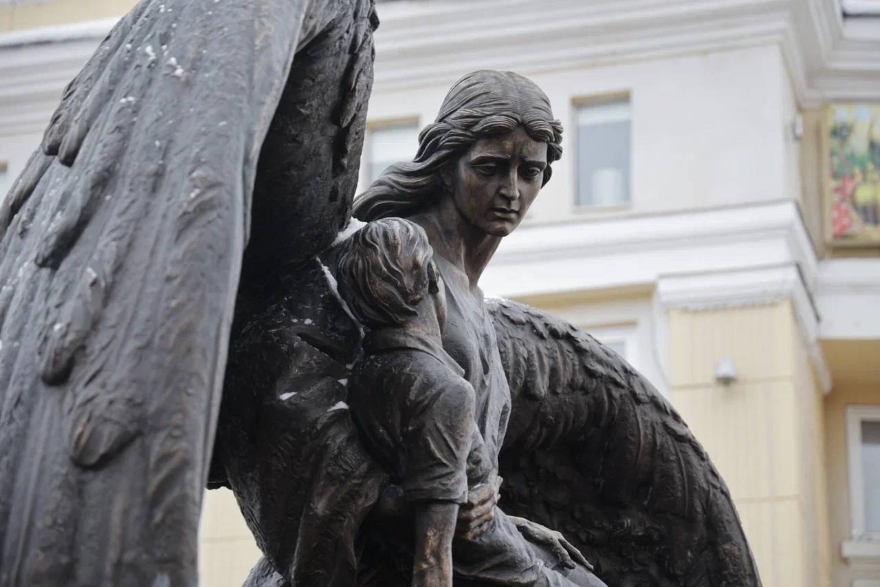 Памятник создан в виде ангела, который бережно держит на руках ребенка. Он поставлен на месте одного из взрывов – напротив кинотеатра «Победа». Крылья скульптуры образуют сердце.