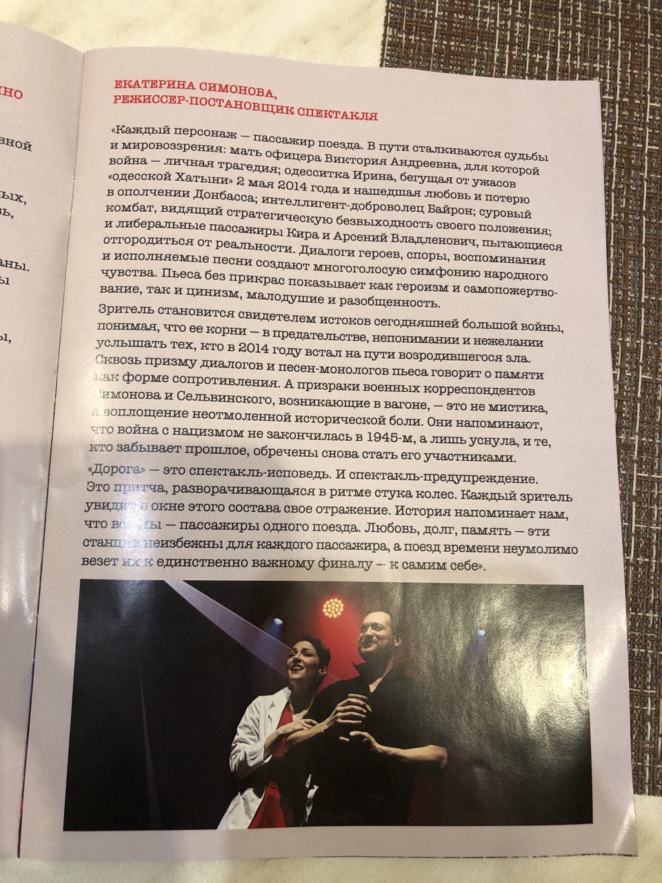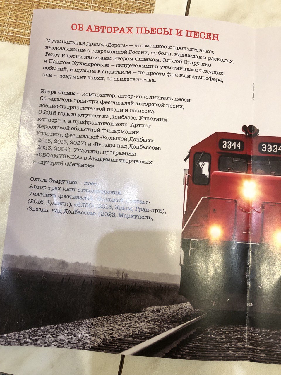 В московском Театре Роста в Царицыно состоялась премьера музыкальной драмы "Дорога", созданной в том числе и по мотивам моих стихов и моей книги "Республика надежды". Огромное спасибо моему другу, одесскому автору и исполнителю песен Игрю Сиваку, написавшему сценарий. Ольге Старушко, также принявшей огромное участие в проекте. Худруку театра - замечательной актрисе Нонне Гришаевой (я её давний фанат и "Графиню де Монсоро" смотрел только ради неё).